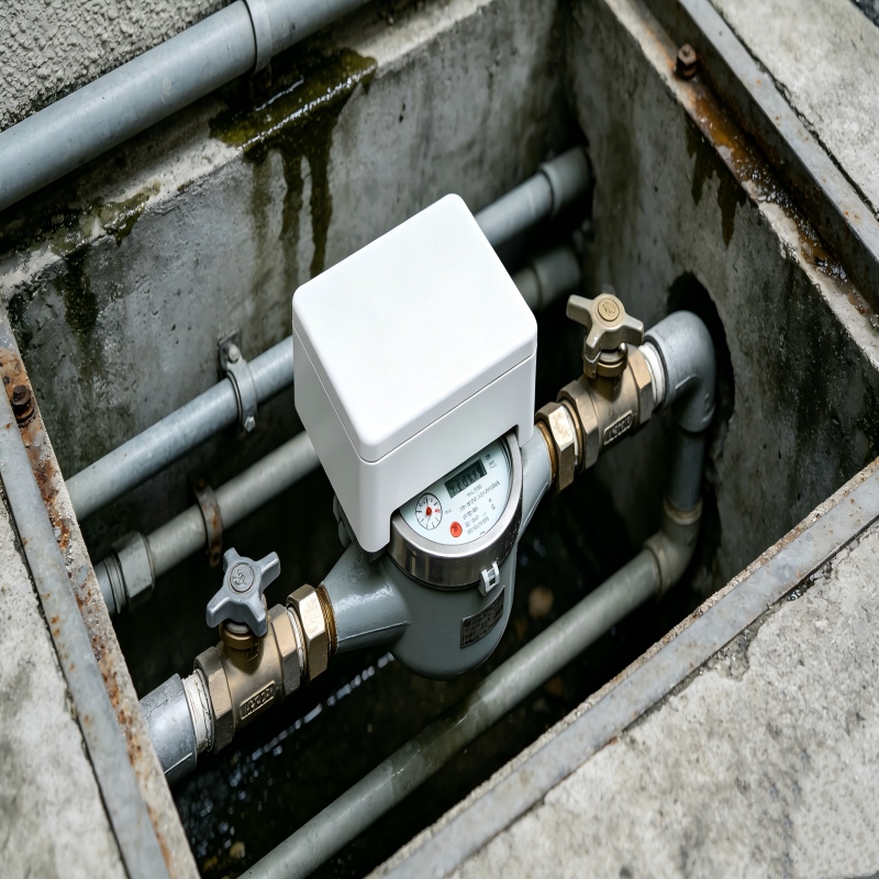 Camera Image Capture: Compact, low-power cameras are installed on existing water meters to capture clear images of meter dials or digit wheels, which can be retrofitted without disrupting water service.